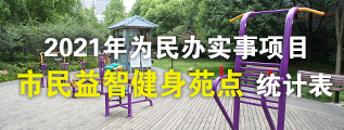 坚持以人民为中心的发展思想,践行“人民城市”重要理念,完善全民健身公共服务体系,增加全民健身场地设施供给,努力解决群众“去哪健身”的问题,2021年计划高质量完成以下三项为民办实事项目:1. 新建改建市民健身步道80条;2. 新建改建市民益智健身苑点600个;3. 新建改建市民多功能运动场80片。